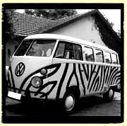 The Zebra Bus is a 1975 Volkswagen Fleetline Kombi. This is a split-windscreen